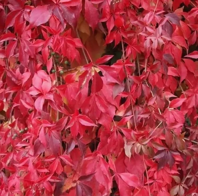 - Листья: крупные, пальчатые, насыщенного зеленого цвета, осенью приобретают яркие оттенки красного и пурпурного